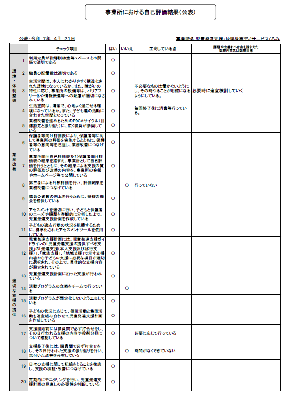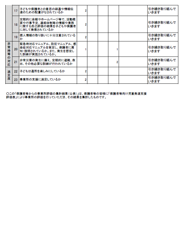 令和6年度の放課後等デイサービスの保護者からの評価です。