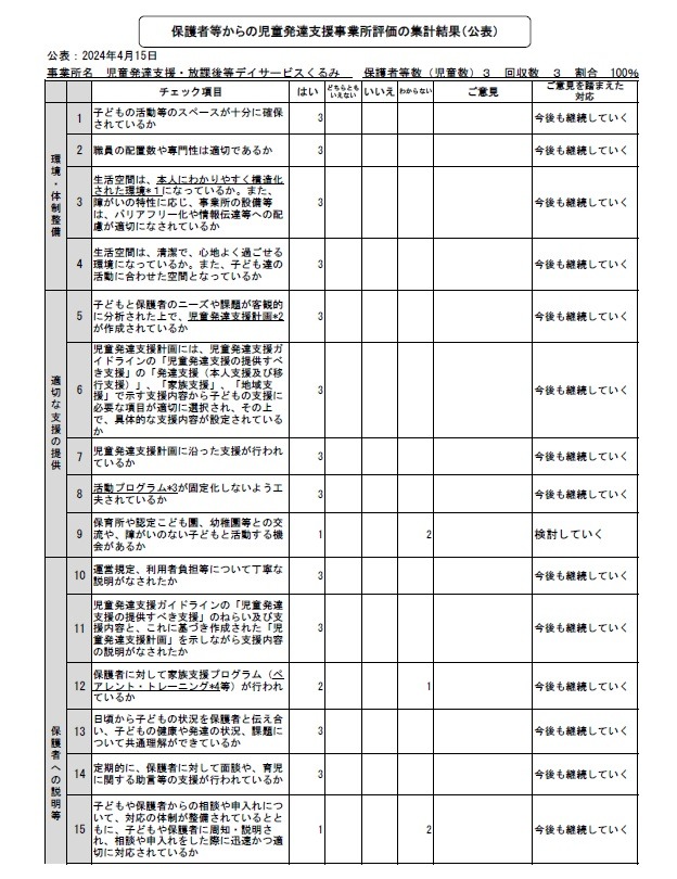 自己評価公表(児童発達支援 保護者)