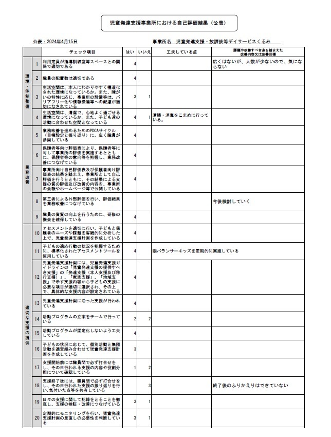 自己評価公表(児童発達支援 事業所)