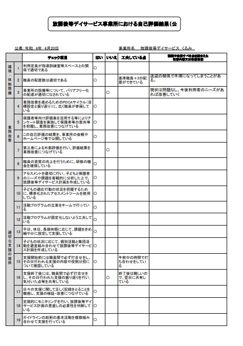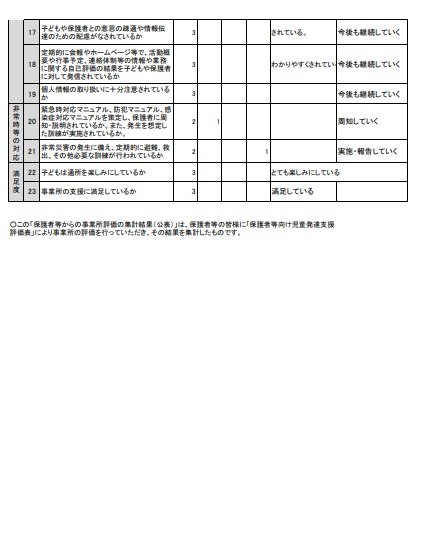 令和3年度の放課後等デイサービスの事業所の自己評価結果です。